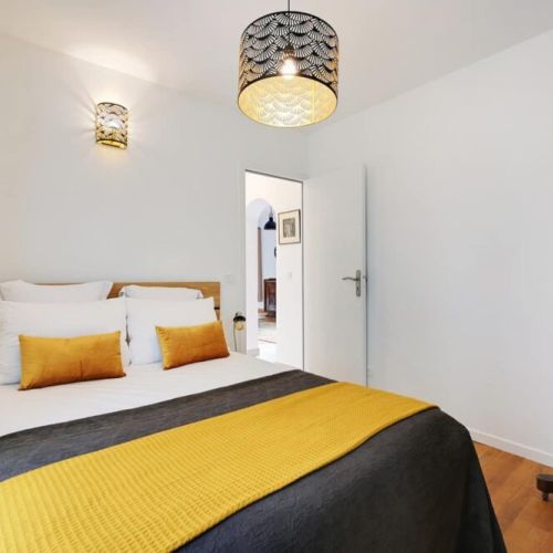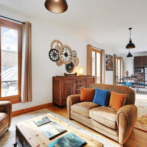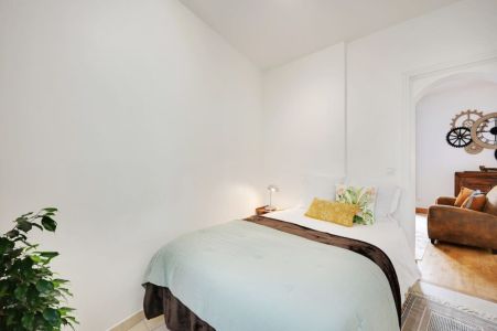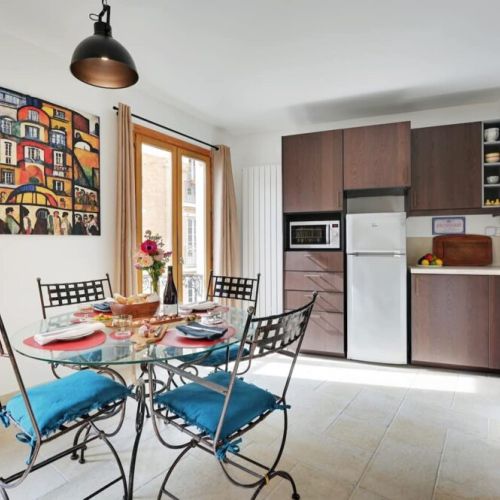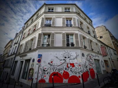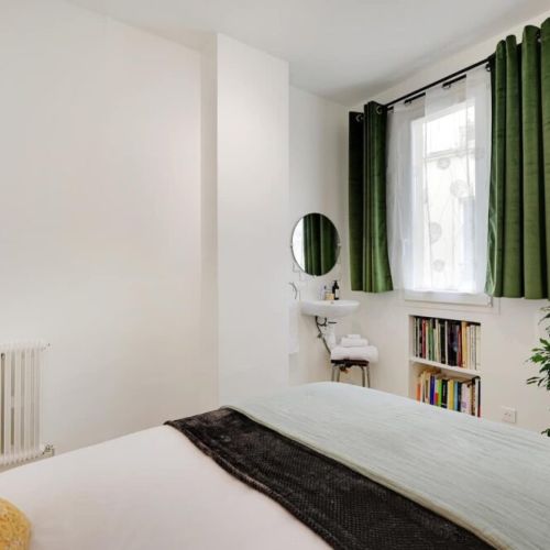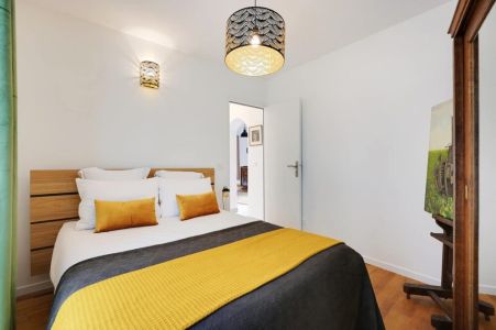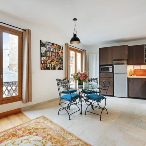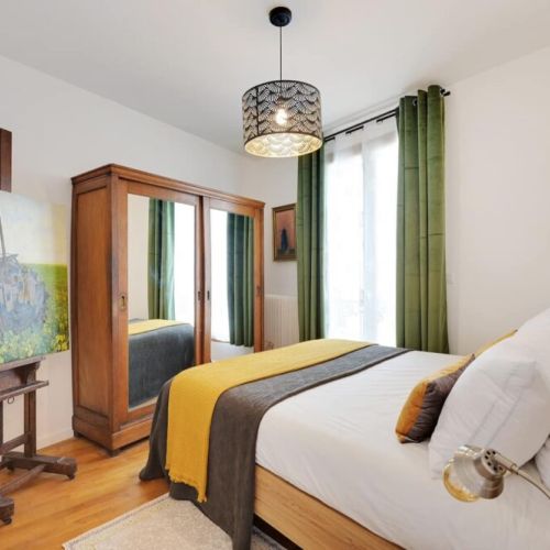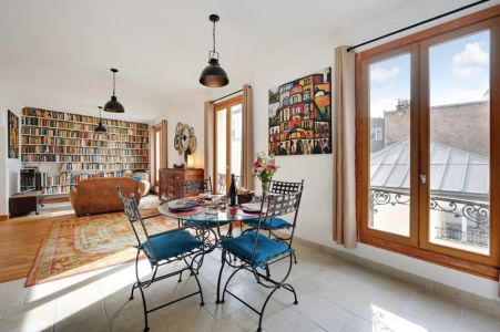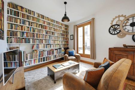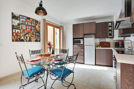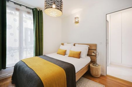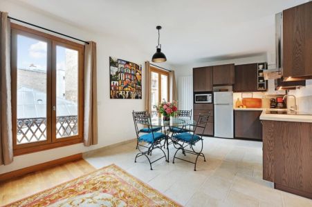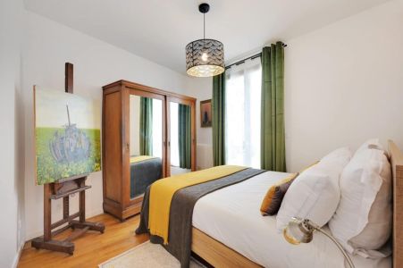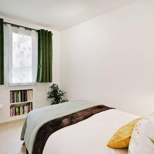 Located one block from vibrant rue des Abbesses, in the heart of Montmartre, between metro Abbesses, Blanche and Pigalle, close to all shops and Sacré Coeur . Completely renovated. Kitchen equipped with induction hob, dishwasher and fridge, electric meter up to standards, bathroom with shower and toilet, wooden floor. Double glazed windows in bedrooms.