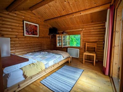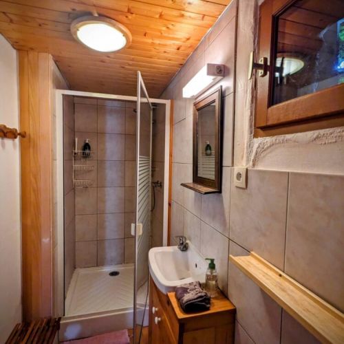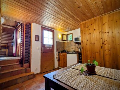 Welcome to our cozy mini chalet, a tranquil retreat nestled on a hillside surrounded by lush fruit trees and the beauty of nature. This intimate space offers a comfortable bedroom, a modern bathroom, and a well-equipped kitchenette.