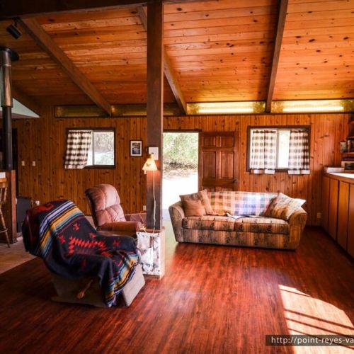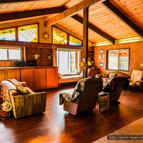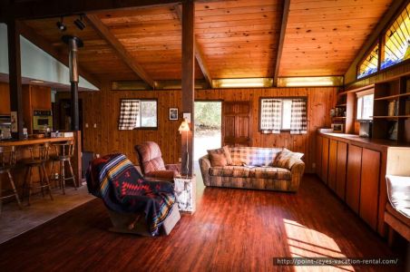This Point Reyes house is located on a quiet rural lane, 2 mns from the village of Point Reyes Station, just one hour north of downtown San Francisco.