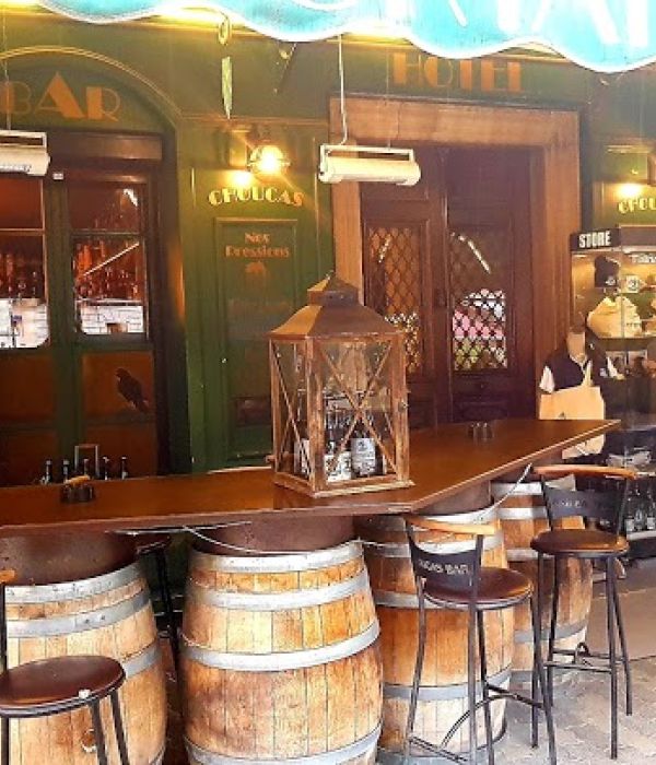 Sunny open patio underneath the town clock tower overlooking center square. Great place to relax and people watch while enjoying drinks or coffee.